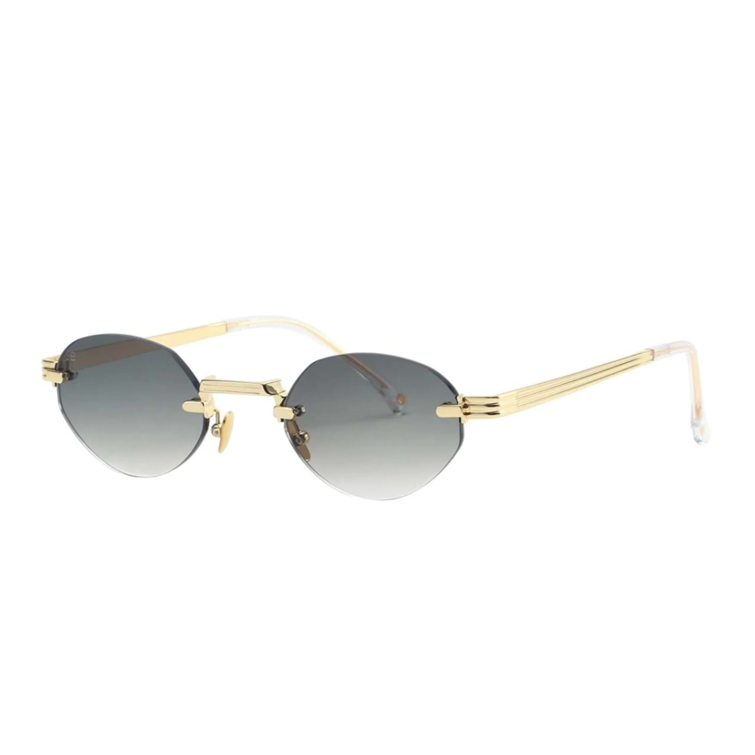 Элегантные безободковые солнцезащитные очки BALI B27 32301 C6 — это сочетание лёгкости, минимализма и люксового акцента. Модель выполнена с овальными линзами сложной геометрии и изысканным металлическим оформлением в тёплом оттенке золота.