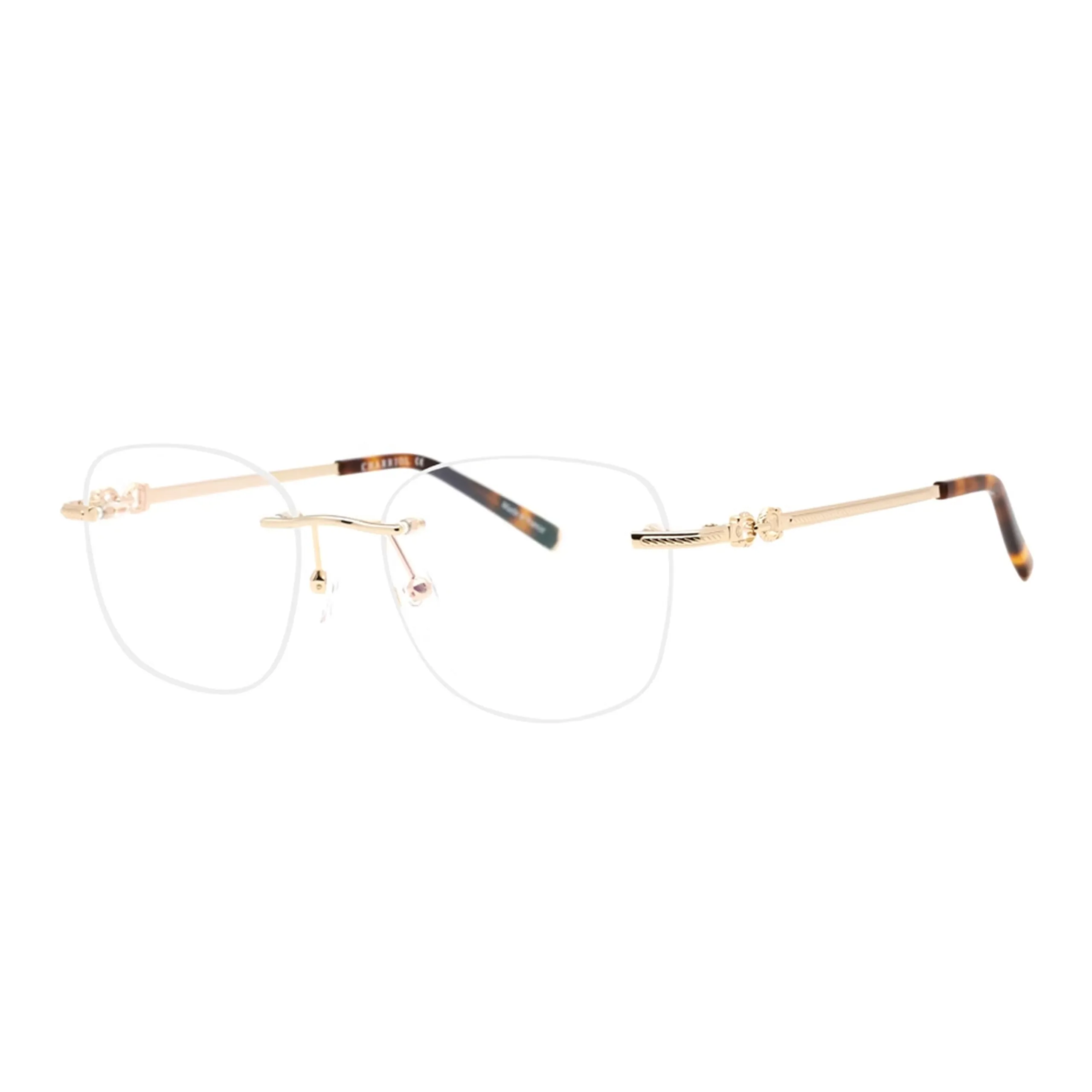 Центральным элементом дизайна выступает изысканная золотистая отделка металлических деталей. Переносица и заушники украшены деликатной гравировкой, напоминающей культовое плетение «cable», ставшее визитной карточкой бренда Charriol. Внимание к деталям прослеживается в каждой линии: от изящного крепления линз до градиентных наконечников заушников в классическом черепаховом окрасе. Использование высококачественных сплавов обеспечивает оправе невероятную легкость и долговечность, делая её практически неощутимой при длительном ношении.