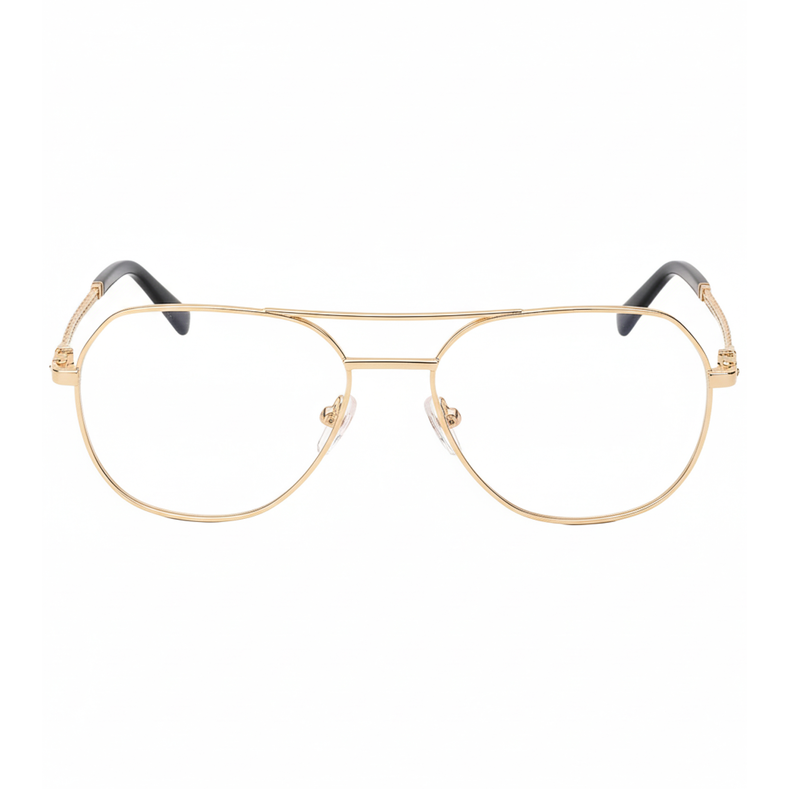 Модель выполнена в форме авиатора, подчёркивающей уверенность и характер. Золотое покрытие придаёт оправе изысканный блеск, а фирменные витые заушники с кабельным узором — узнаваемый стиль Charriol, вдохновлённый ювелирным наследием бренда.