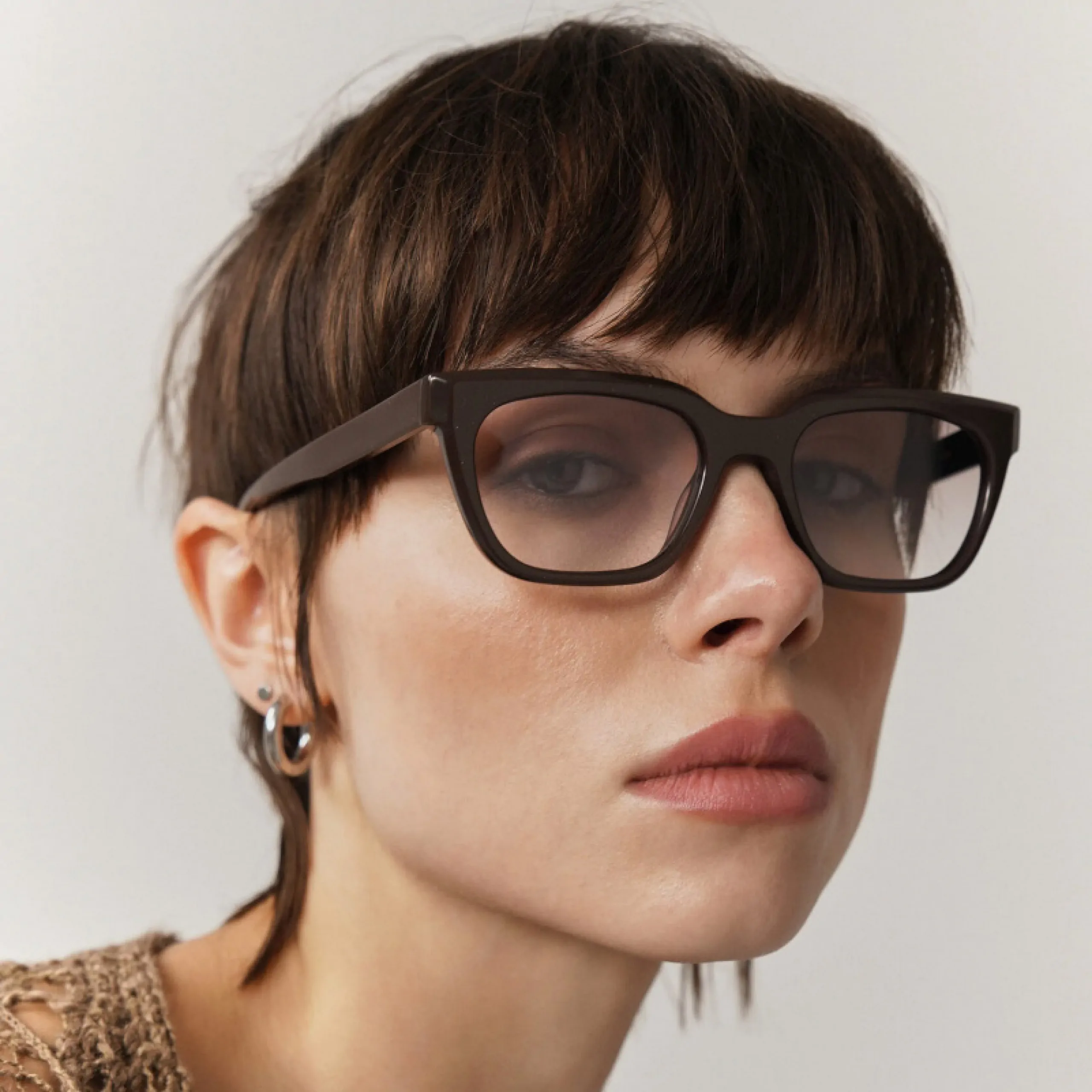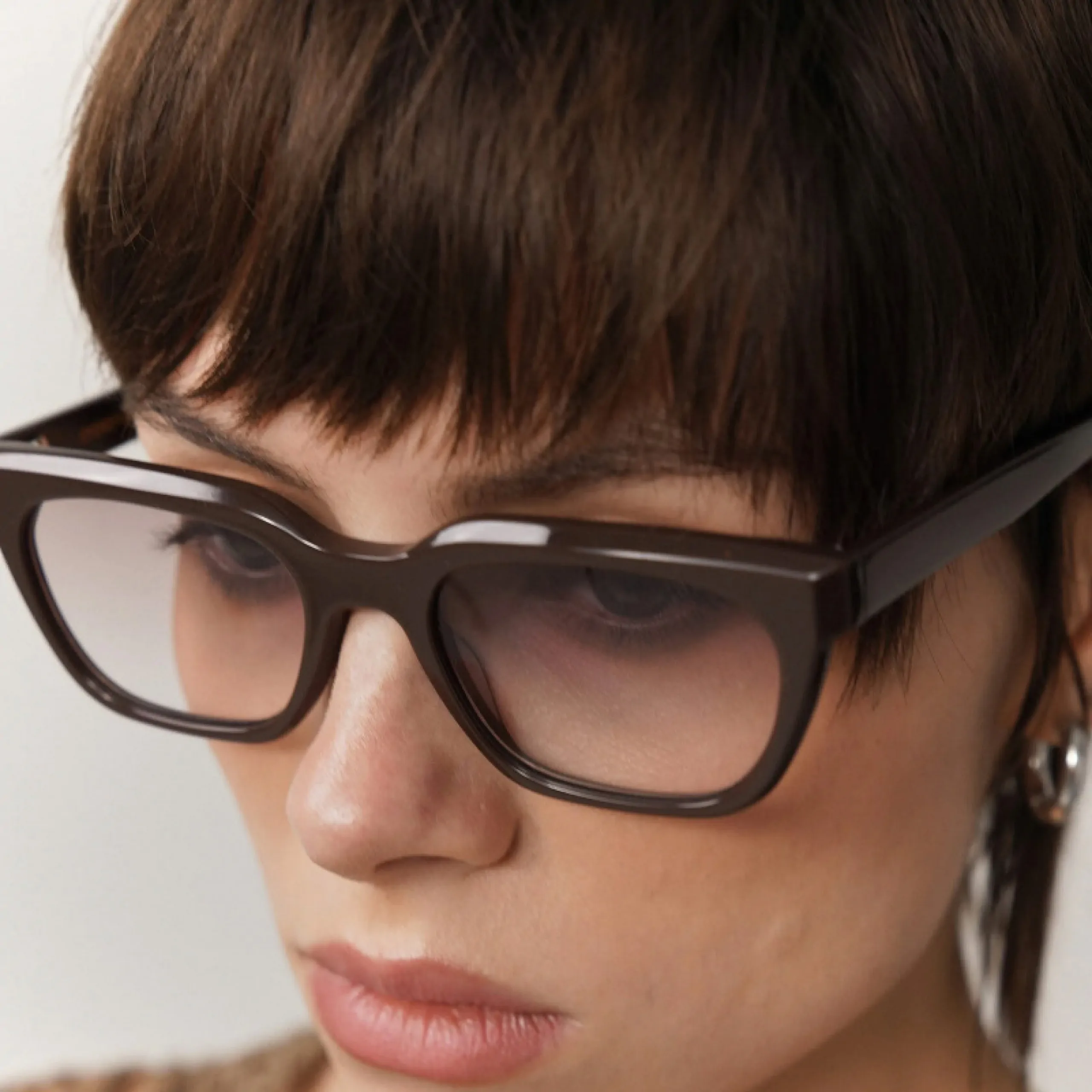 Модель Eyerepublic 75 Chocolate — это современная интерпретация прямоугольной формы с акцентом на выразительную геометрию. Плотная ацетатная оправа выполнена в глубокем шоколадном оттенке с лёгким блеском, что придаёт модели насыщенность и визуальную фактуру.