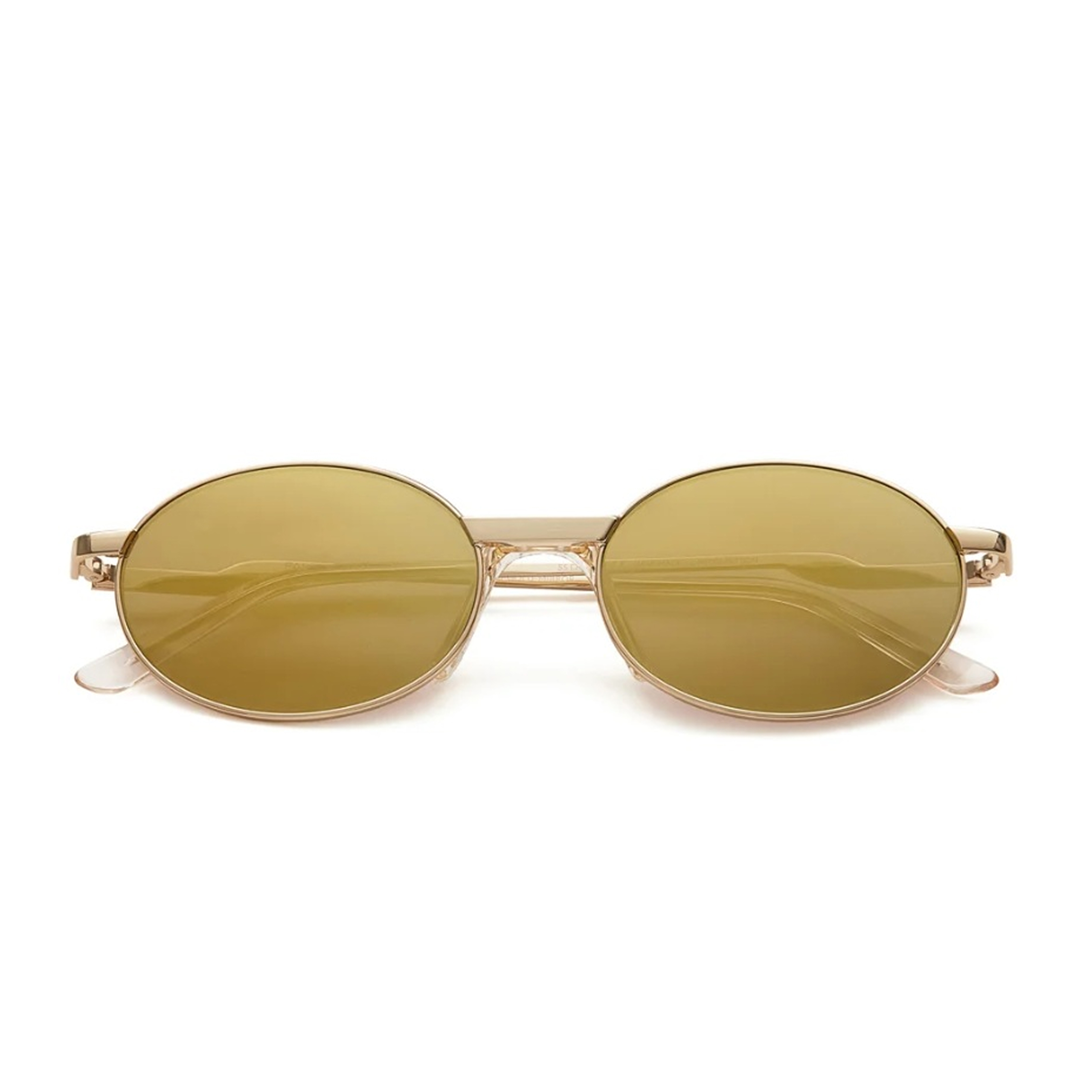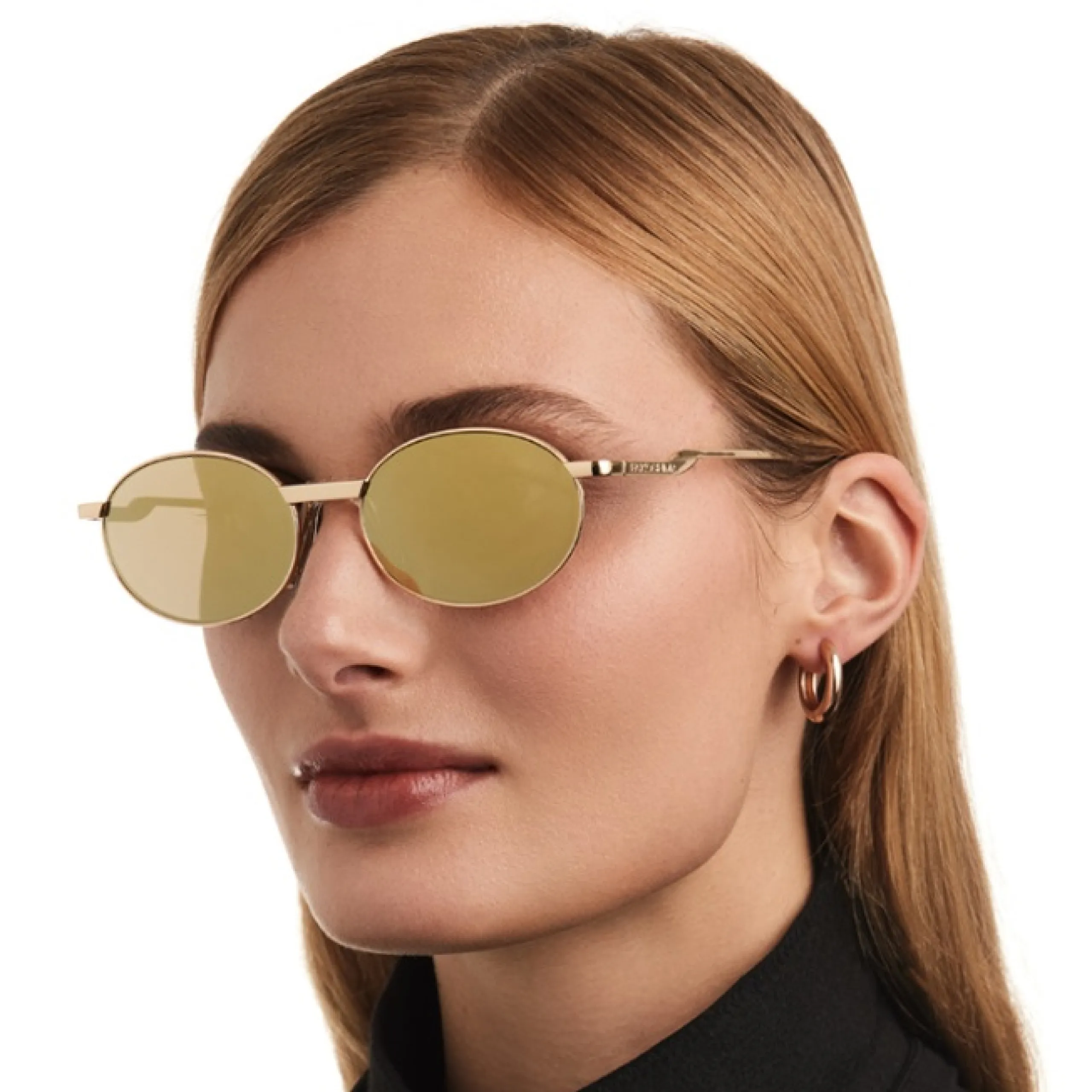 Главной особенностью модели выступают зеркальные линзы с теплым золотым напылением, которые создают эффектную игру света и обеспечивают полную приватность взгляда. Тонкая металлическая оправа подчеркивает изящество линий, а безупречное качество исполнения гарантирует легкость при ношении и долговечность. Золотая зеркальная поверхность не только защищает глаза от ярких лучей, но и служит ярким визуальным акцентом, транслирующим уверенность и вкус.