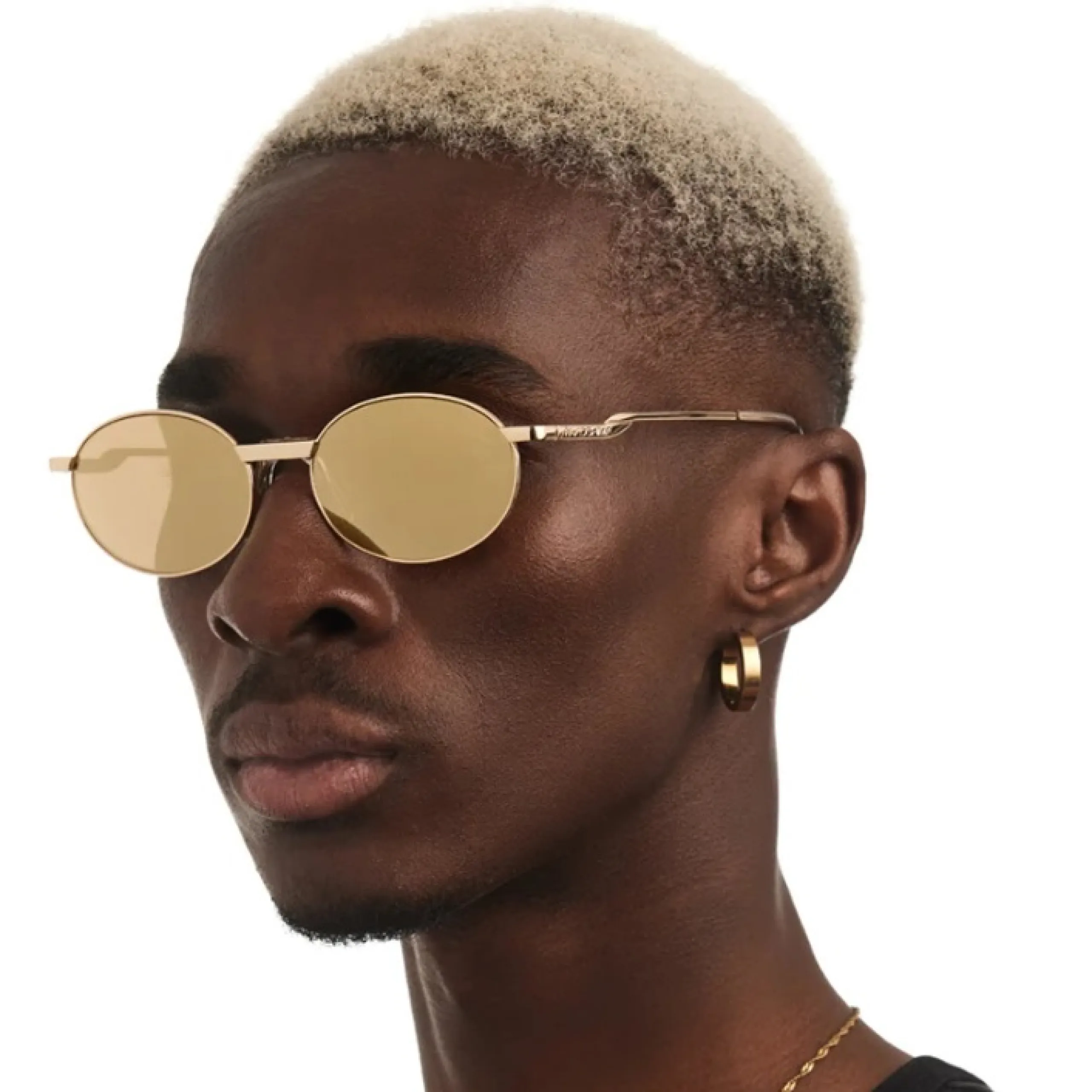Солнцезащитные очки Fakoshima 06-gold mirror — это изысканный симбиоз ретро-футуризма и высокого ювелирного искусства. Модель представлена в лаконичной овальной оправе, выполненной в сияющем золотом оттенке, который мгновенно придает образу статусность и артистизм. Этот аксессуар выходит за рамки привычной оптики, становясь центральным элементом имиджа, вдохновленным эстетикой киберпанка и неоклассики.