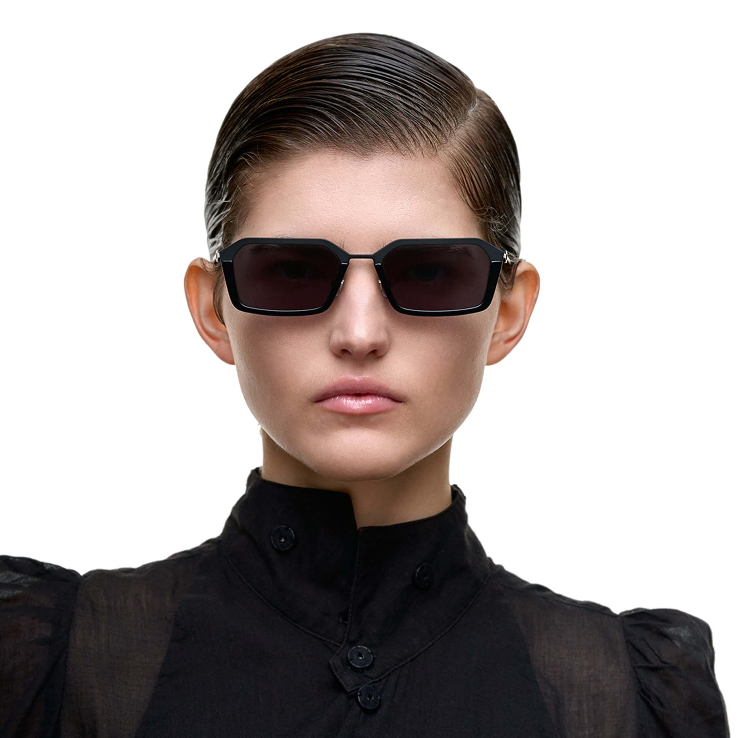 Эта комбинированная оправа — самая тонкая в коллекции. Стальной каркас дополнен вставками из ацетата целлюлозы, а дужки оценят те, кто привык носить очки на шнурке или цепочке – они буквально созданы для крепления аксессуаров.
