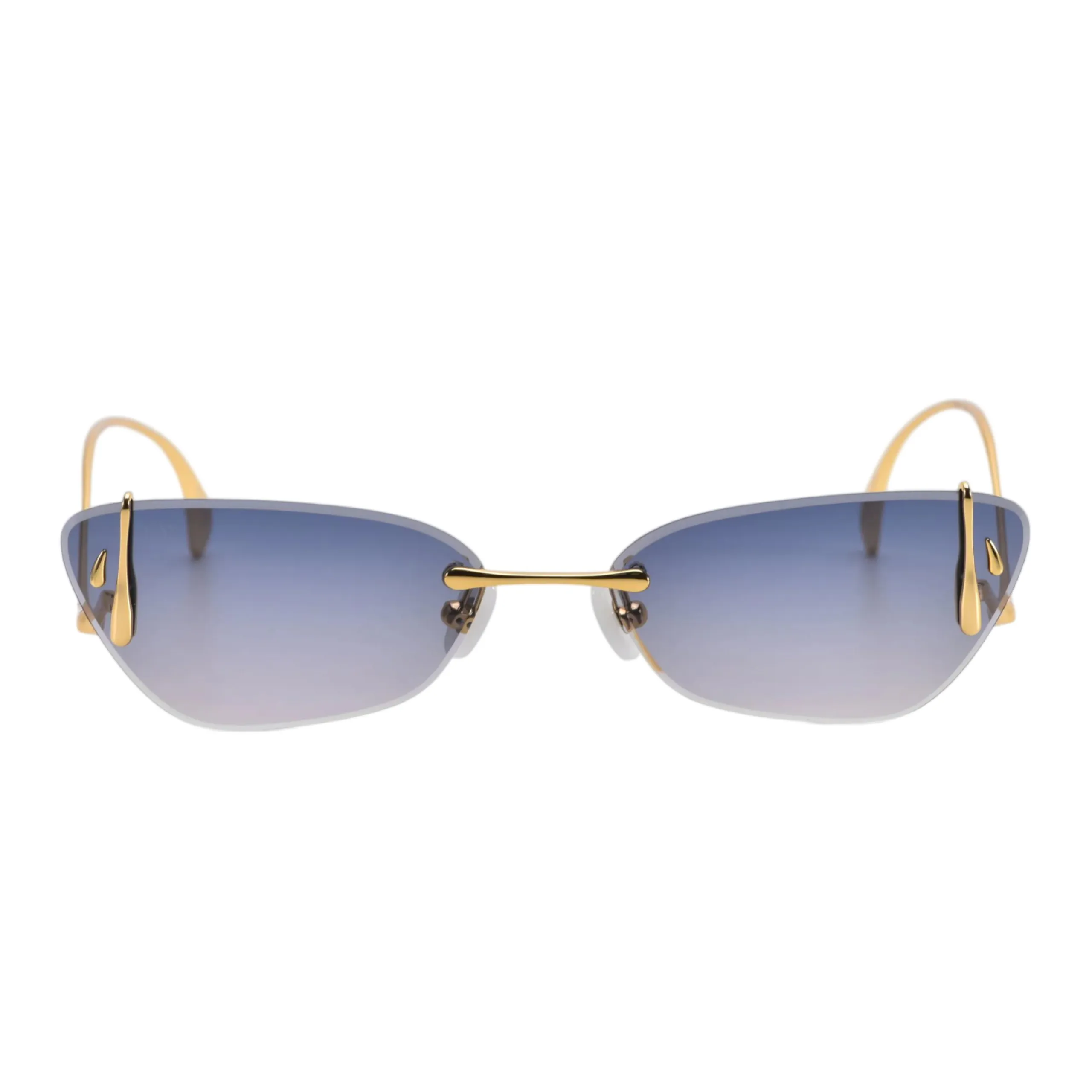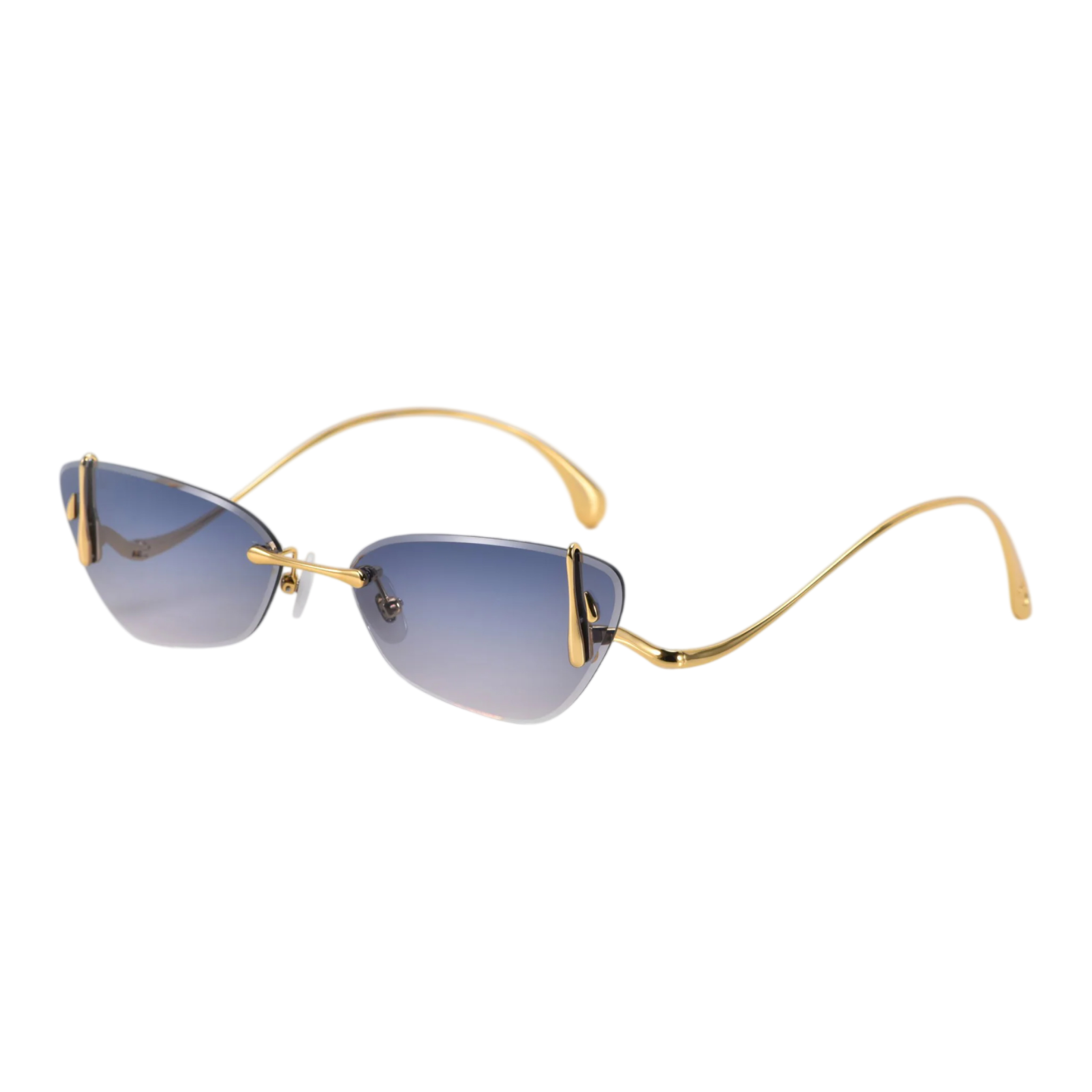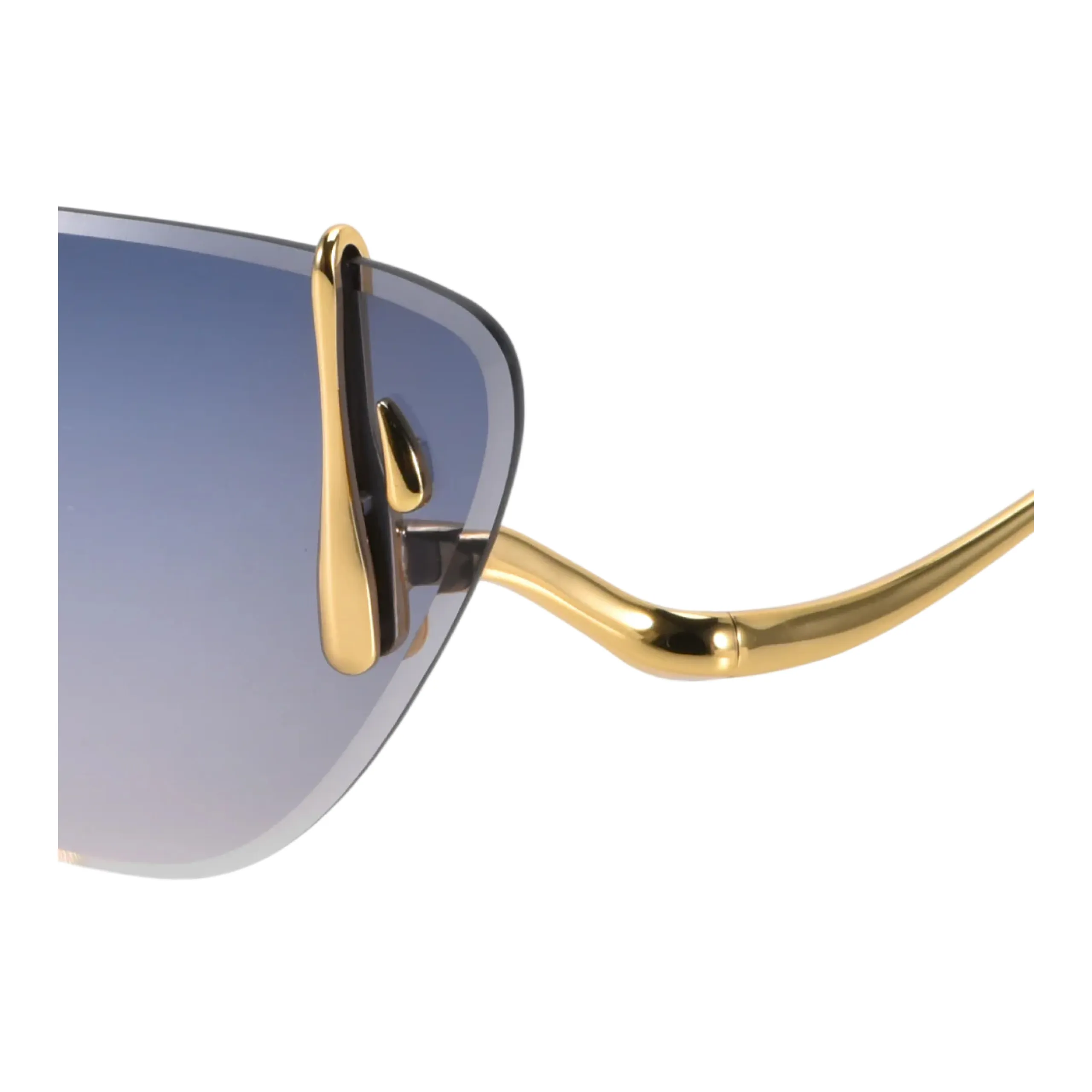 Главная магия оправы кроется в ювелирных деталях и цвете. Скульптурные боковые крепления в виде капель «расплавленного» желтого золота деликатно обнимают края линз, выступая в роли самостоятельного украшения. Роскошный небесно-голубой градиент (отсылка к драгоценному топазу) освежает образ и делает взгляд более глубоким и выразительным. Благодаря такой светлой тонировке и ювелирной тонкости конструкции, эти очки становятся идеальным спутником для светских выходов, позволяя не расставаться с ними даже в помещении или с наступлением сумерек.