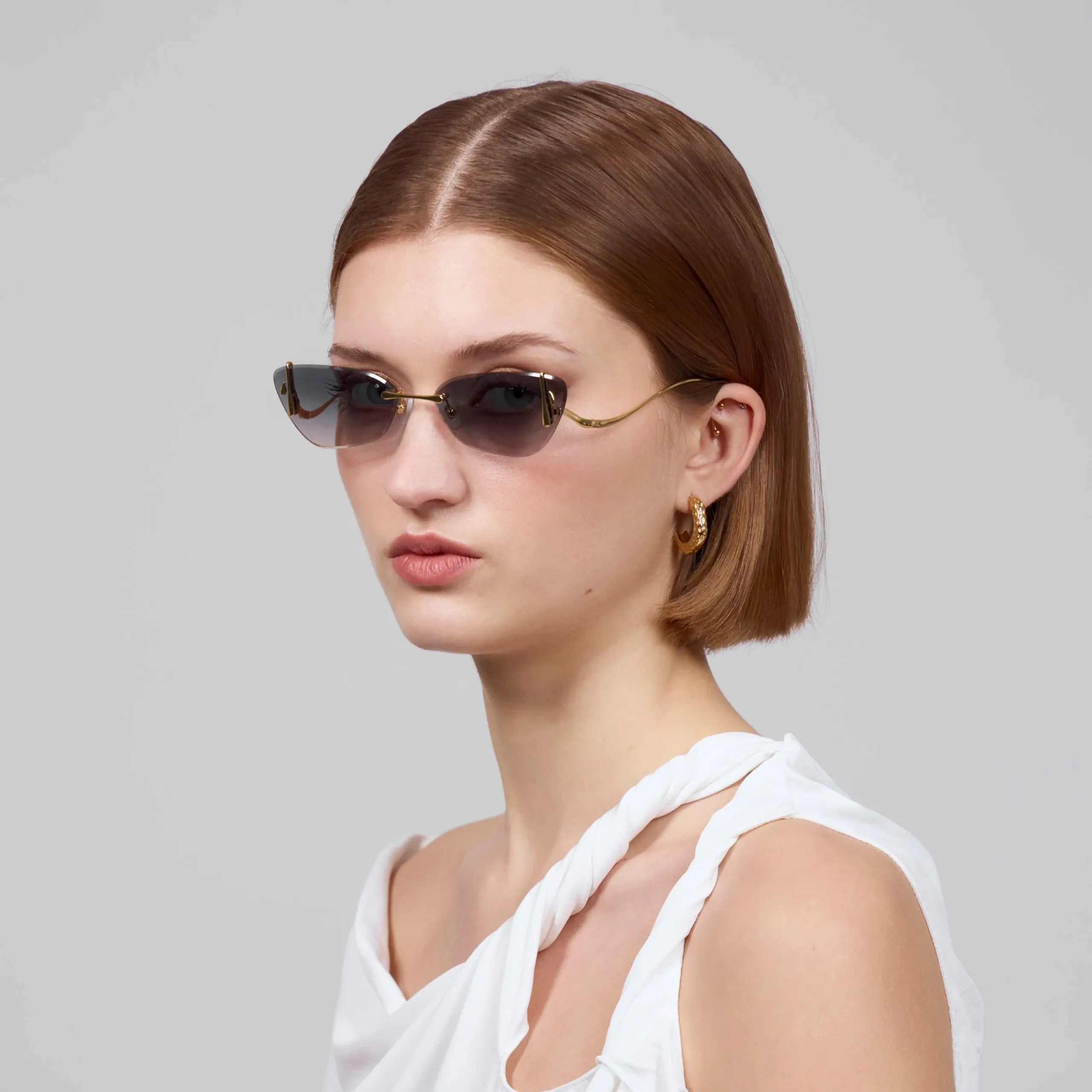 For Art’s Sake Crimson Topaz — это абсолютная невесомость, в которой растворяется эстетика гламурных нулевых. Лондонский бренд виртуозно работает с безоправными конструкциями, превращая их из утилитарной оптики в драгоценный стейтмент-аксессуар. В этой модели дерзкий, вытянутый силуэт «кошачьего глаза» лишен тяжелых рамок, благодаря чему очки выглядят на лице невероятно хрупко, изящно и воздушно.