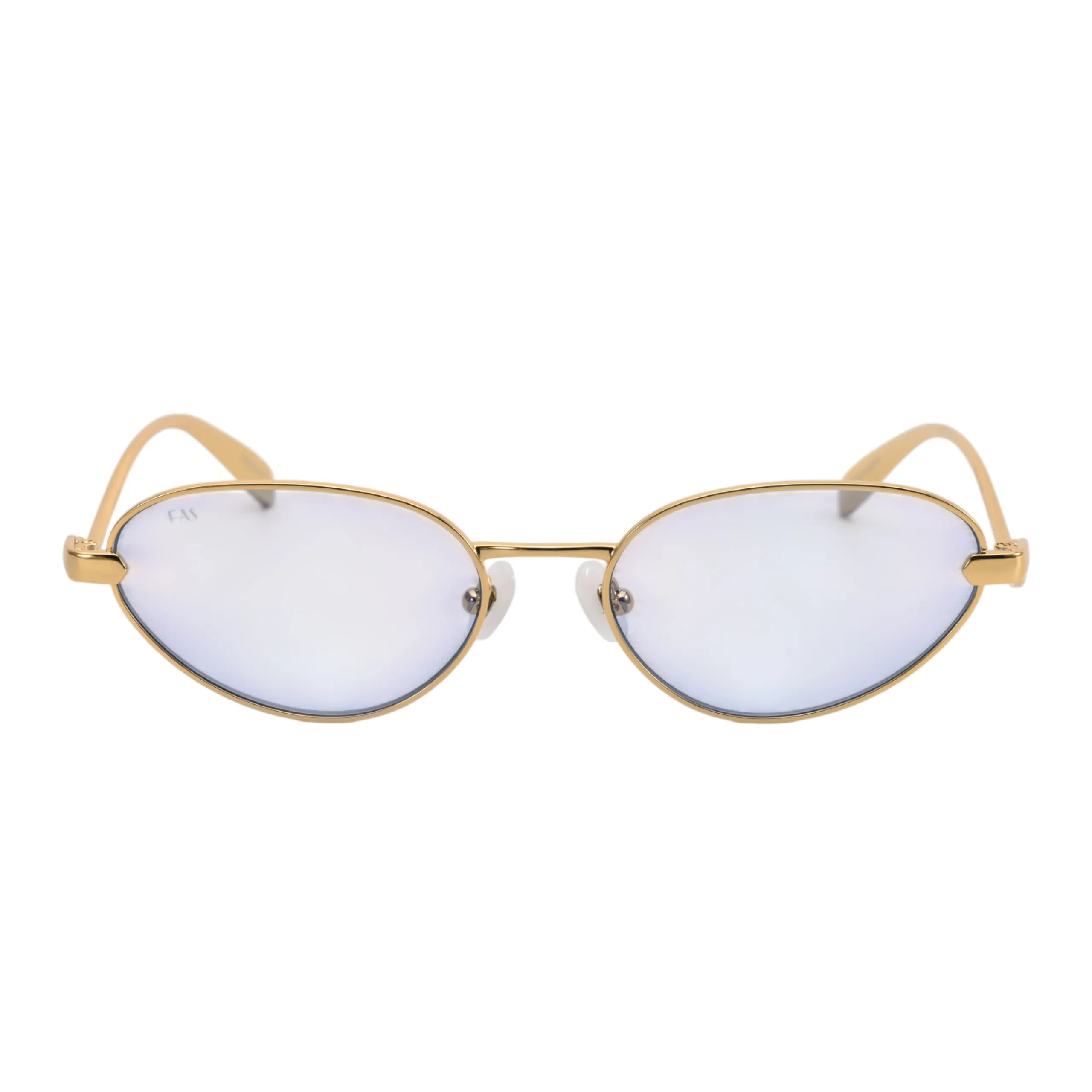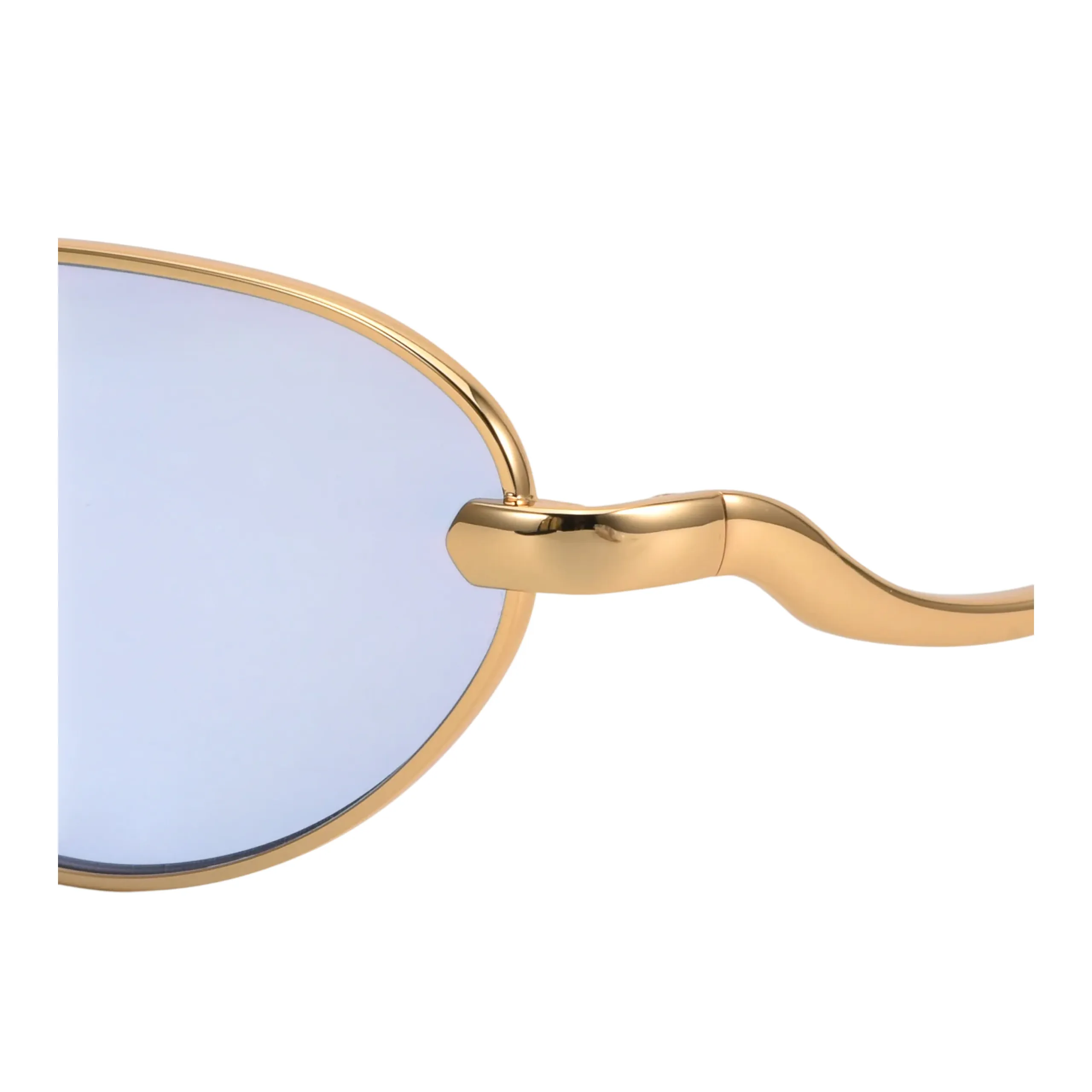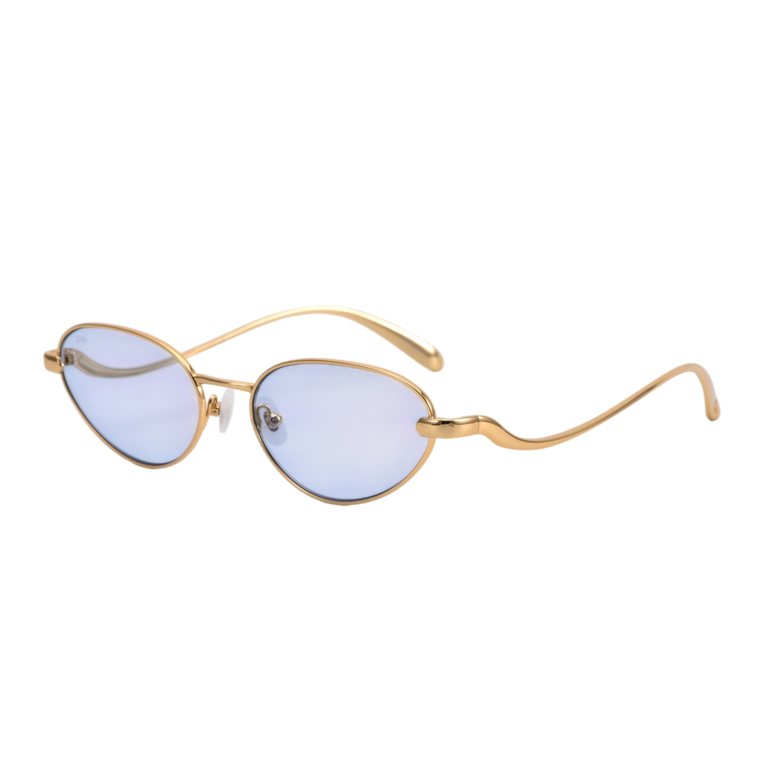 Тончайшая металлическая оправа в оттенке классического желтого золота невероятно деликатно обрамляет узкие овальные линзы. Главная магия этой модели кроется в цвете: полупрозрачный, кристально-чистый голубой оттенок не скрывает взгляд, а работает как легкий косметический фильтр, делая глаза более выразительными. Благодаря такой светлой тонировке, эти очки становятся универсальным аксессуаром — их можно не снимать даже в помещении или с наступлением вечера. Ювелирная тонкость конструкции гарантирует, что оправа будет абсолютно невесомой на лице.