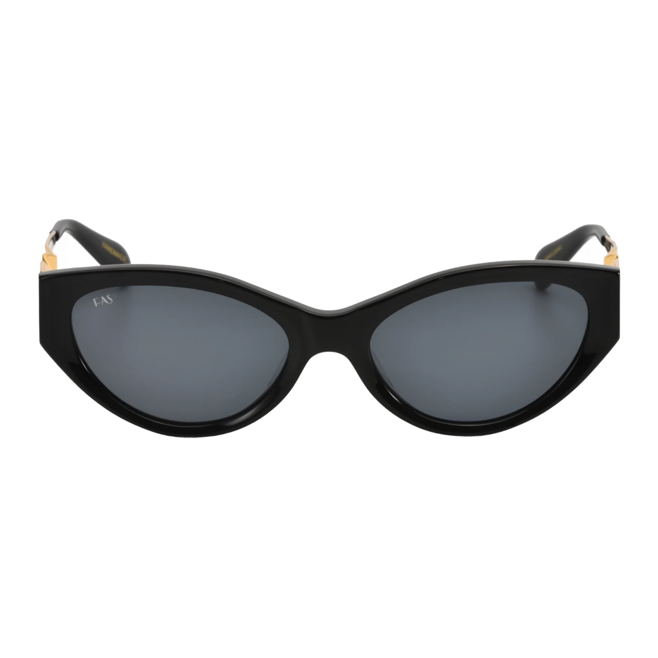 Глубокий глянцевый черный ацетат фронтальной части создает выразительный контраст с роскошными золотыми элементами на дужках. Эти металлические вставки — не просто функциональные шарниры, а настоящее самостоятельное ювелирное украшение, которое изящно бликует на свету и подчеркивает премиальный статус аксессуара. Плотные темные линзы надежно скрывают взгляд, добавляя образу кинематографичной загадочности и дистанции. Это очки для женщины, которая не боится привлекать внимание и ценит вещи «с характером».