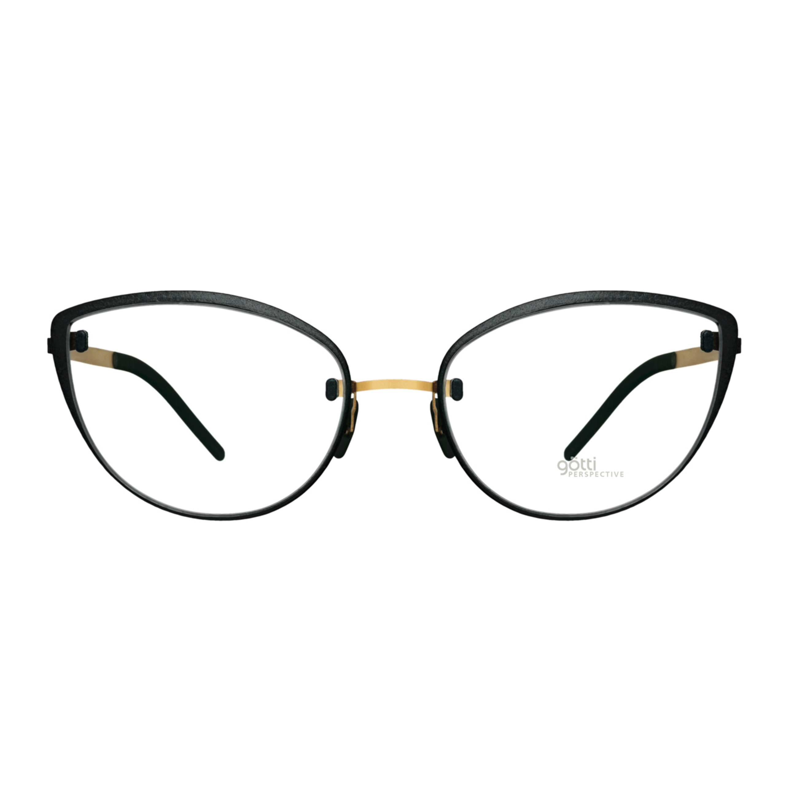 Gotti BL 06 Bold 52 Gold Berry — выразительная оправа в стиле «bold cat-eye», созданная в характерной минималистичной эстетике марки Götti. Лёгкий титановый каркас с матовым черным фасадом сочетается с изящной золотистой перемычкой и тонкими заушниками, что создаёт эффект аккуратного акцента без перегруженности.