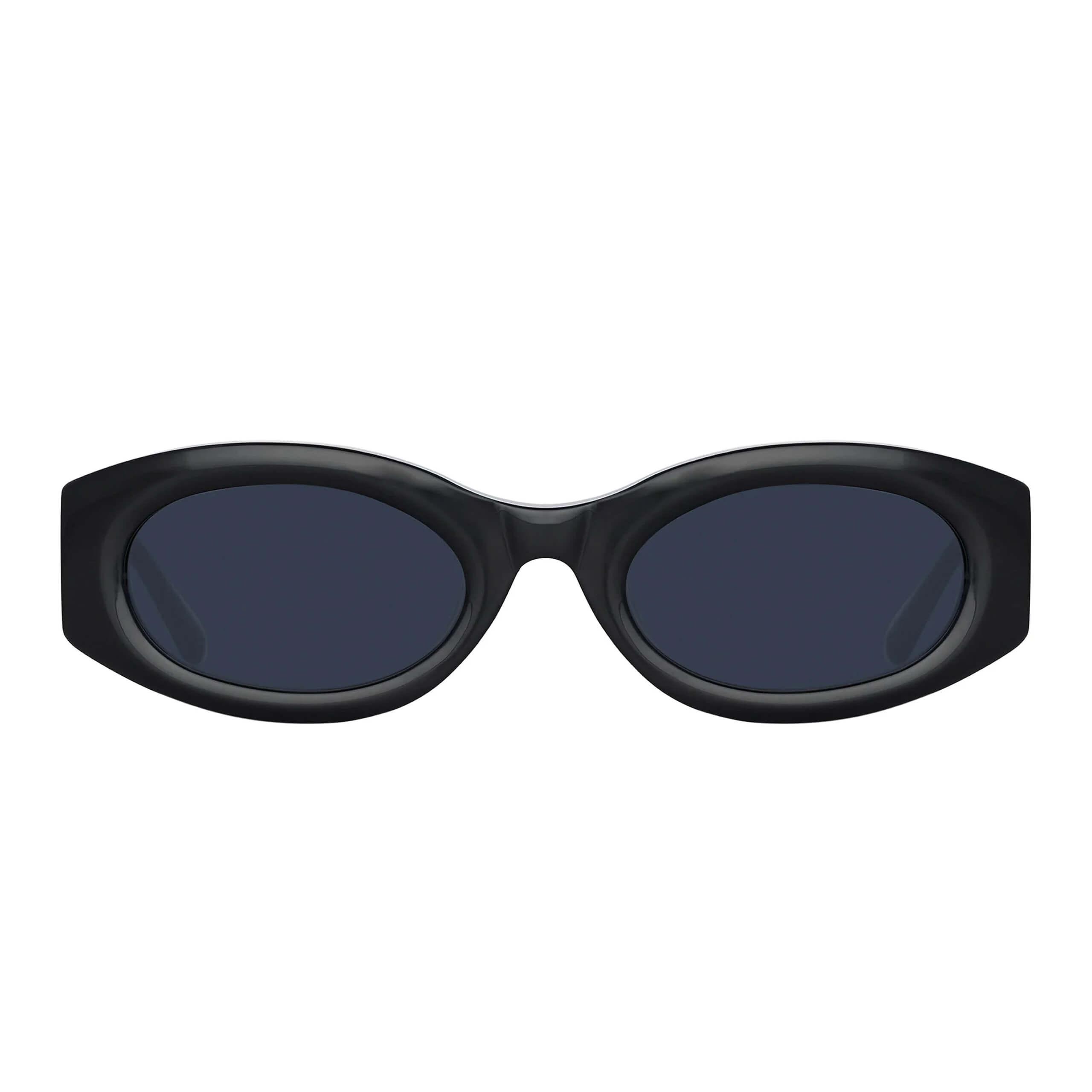 Очки оснащены тёмными серо-чёрными нейлоновыми линзами, обеспечивающими качественную защиту от солнца и комфортный уровень затемнения. Благодаря овальной форме с мягким вытяжением модель идеально балансирует между дерзостью и элегантностью.