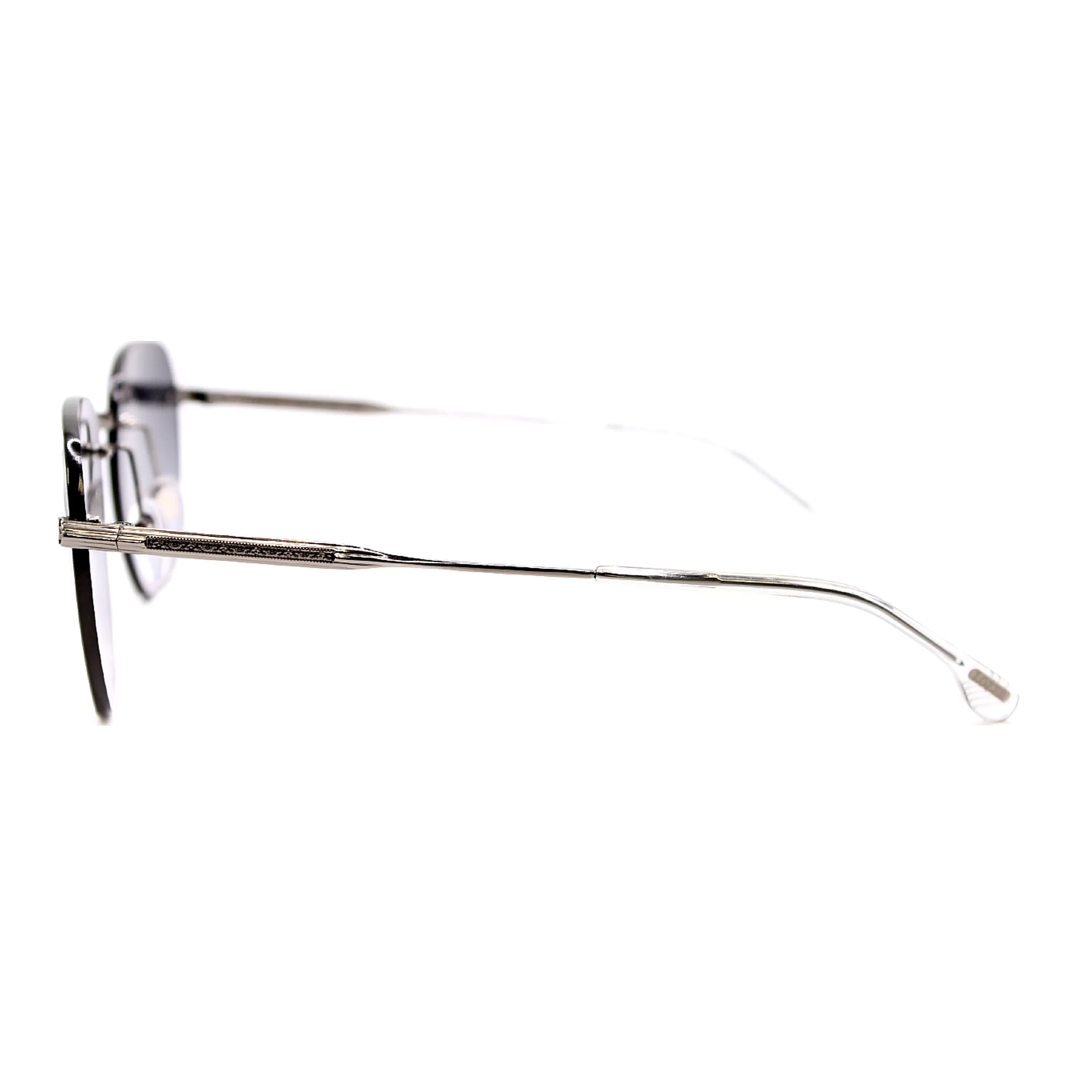 Техническое исполнение оправы безупречно: фурнитура цвета благородной оружейной стали (gunmetal) выполнена из гипоаллергенного сплава, обеспечивая прочность и комфортную посадку в течение всего дня. Линзы с мягким серо-голубым градиентом не только гарантируют 100% защиту от ультрафиолета, но и снижают утомляемость глаз, сохраняя естественную цветопередачу. Это аксессуар, в котором эстетика «тихой роскоши» встречается с бескомпромиссным качеством.