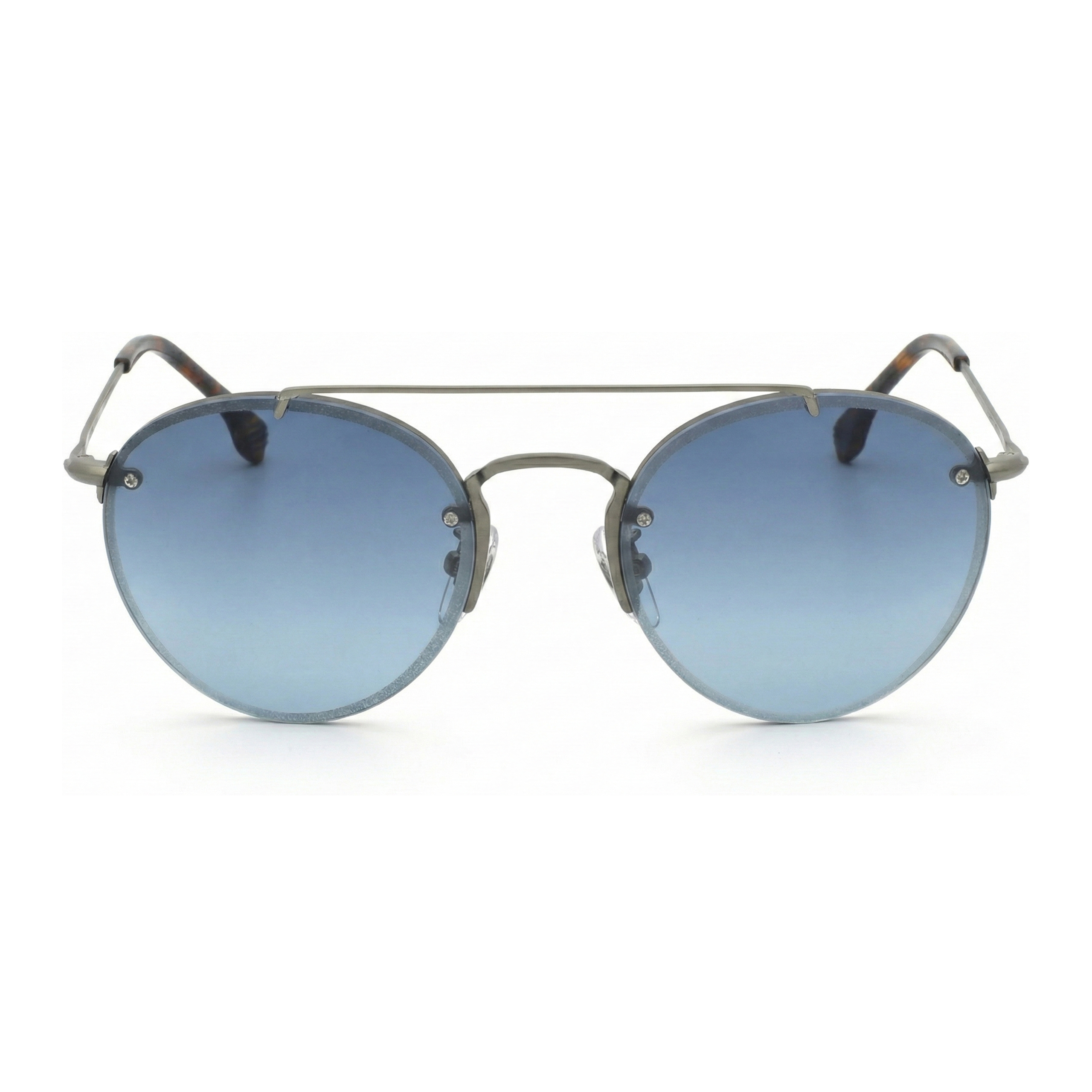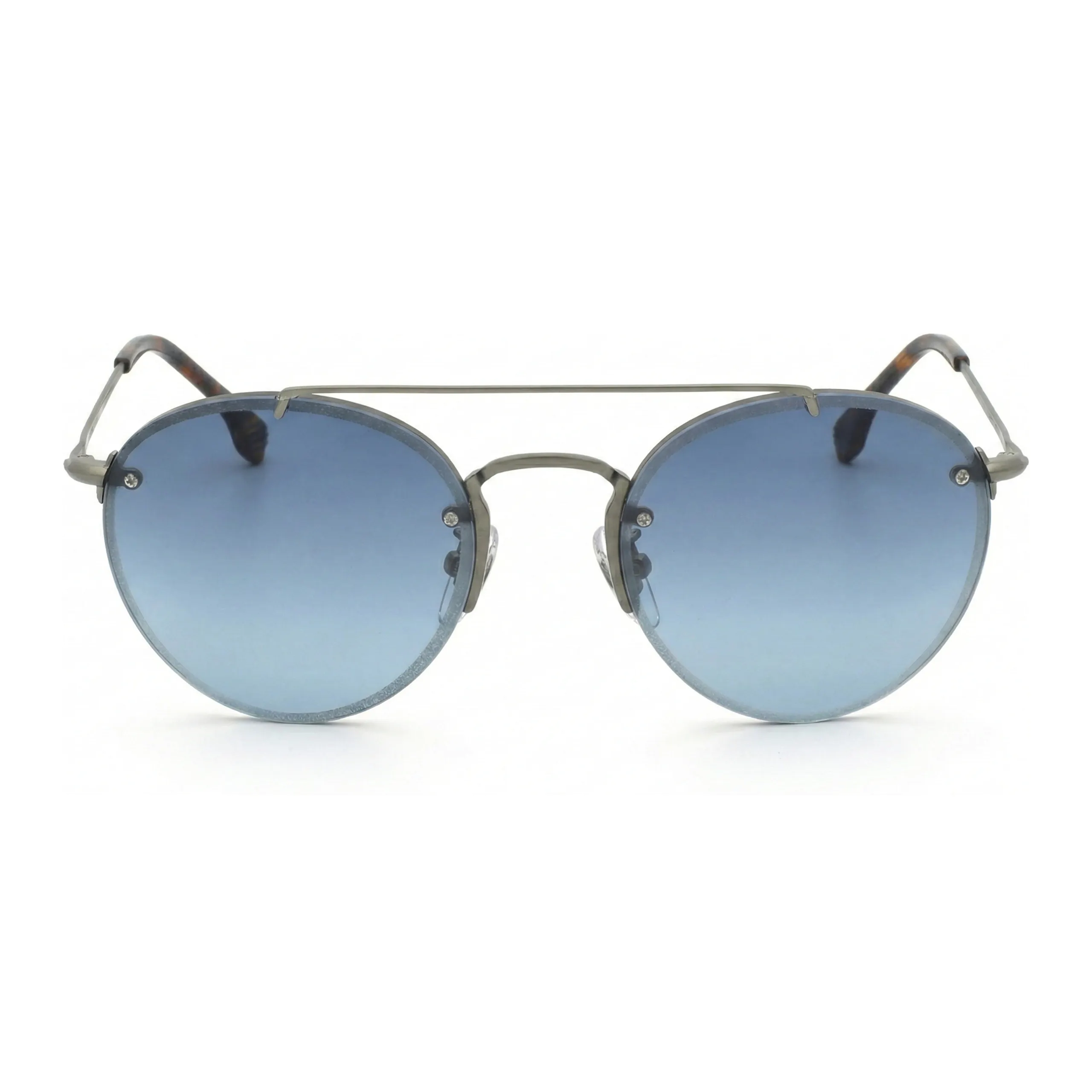 Техническое исполнение модели подтверждает её премиальный статус: оправа выполнена из легкого, но прочного металла благородного серого оттенка, который гармонично контрастирует с теплыми наконечниками заушников из ацетата черепахового окраса. Линзы с изысканным синим градиентом не только добавляют взгляду кинематографической глубины, но и гарантируют комфортное зрение при ярком свете. Это аксессуар, в котором вековые традиции итальянской оптики обрели актуальную, трендовую форму.
