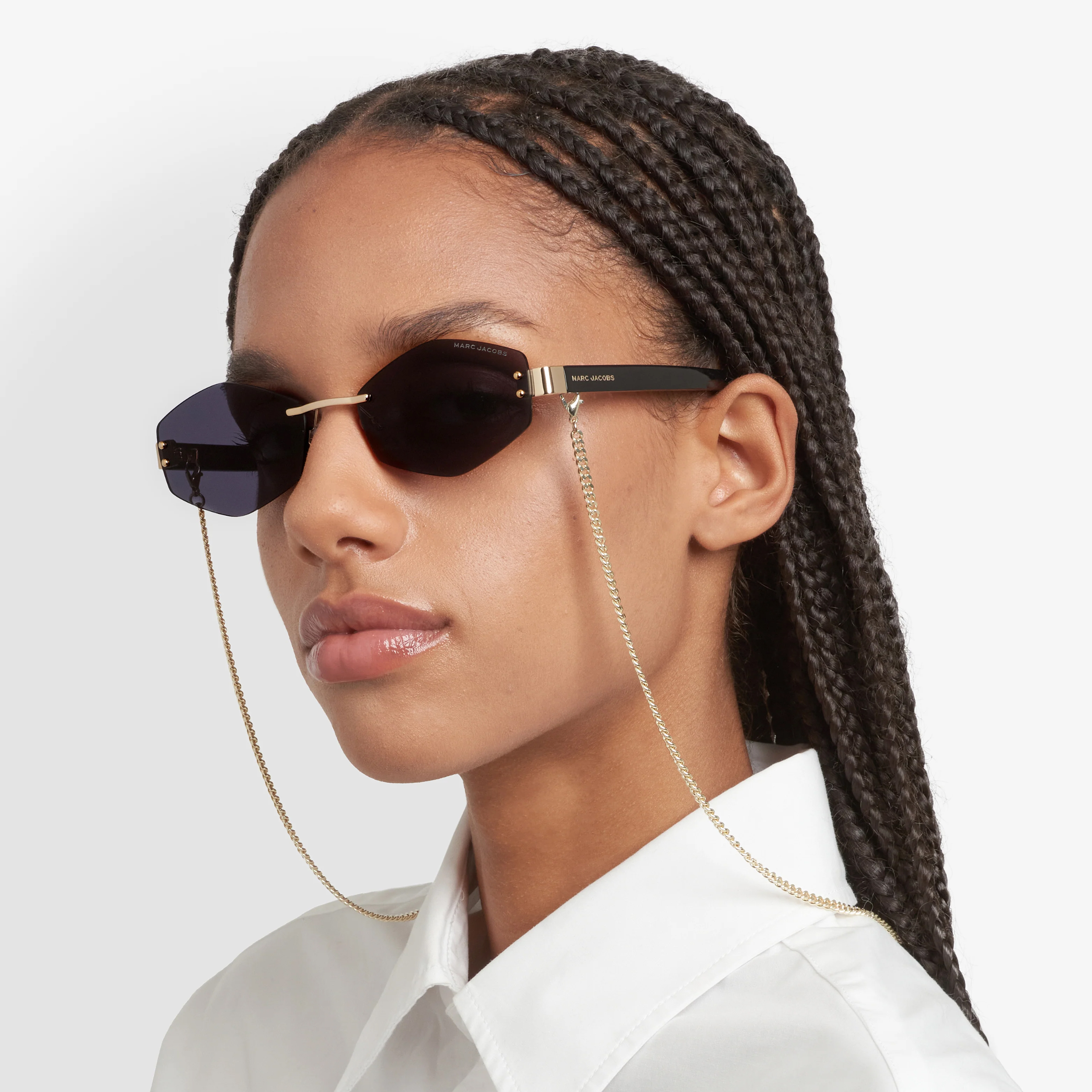 Модель обеспечивает надёжную защиту от ультрафиолетового излучения (UV400) и объединяет элегантность, комфорт и современный дух коллекции Marc Jacobs 2024–2025.