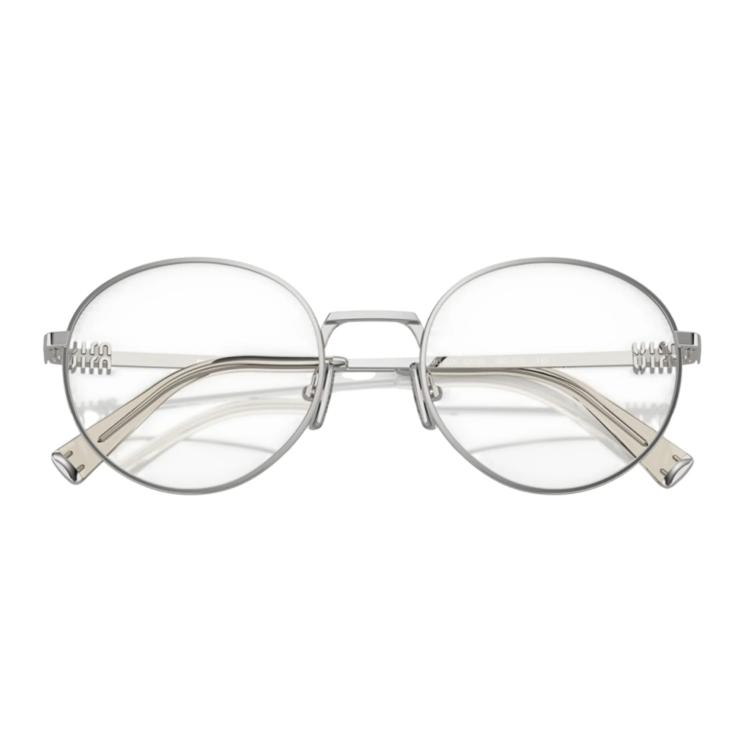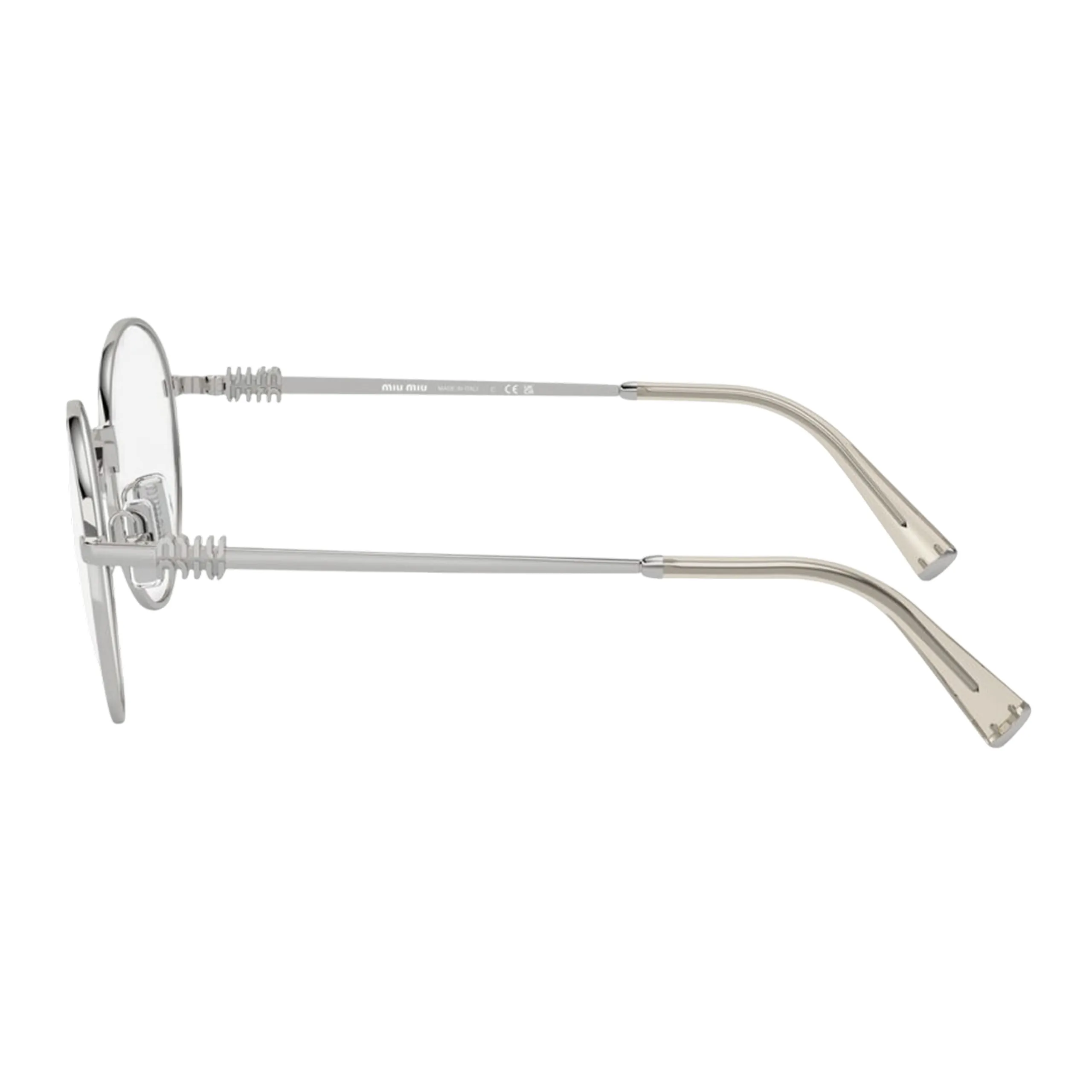 Главной визуальной доминантой оправы является инновационное исполнение заушников. Вертикальный логотип Miu Miu, деликатно интегрированный в месте крепления шарниров, служит не просто знаком подлинности, но и изысканным архитектурным акцентом. Лаконичность формы «панто» в сочетании с холодным зеркальным блеском серебра (код 1BC1O1) делает эту модель универсальным аксессуаром, который легко адаптируется как к строгому офисному дресс-коду, так и к расслабленному стилю casual, привнося в каждый выход нотку миланского шика.