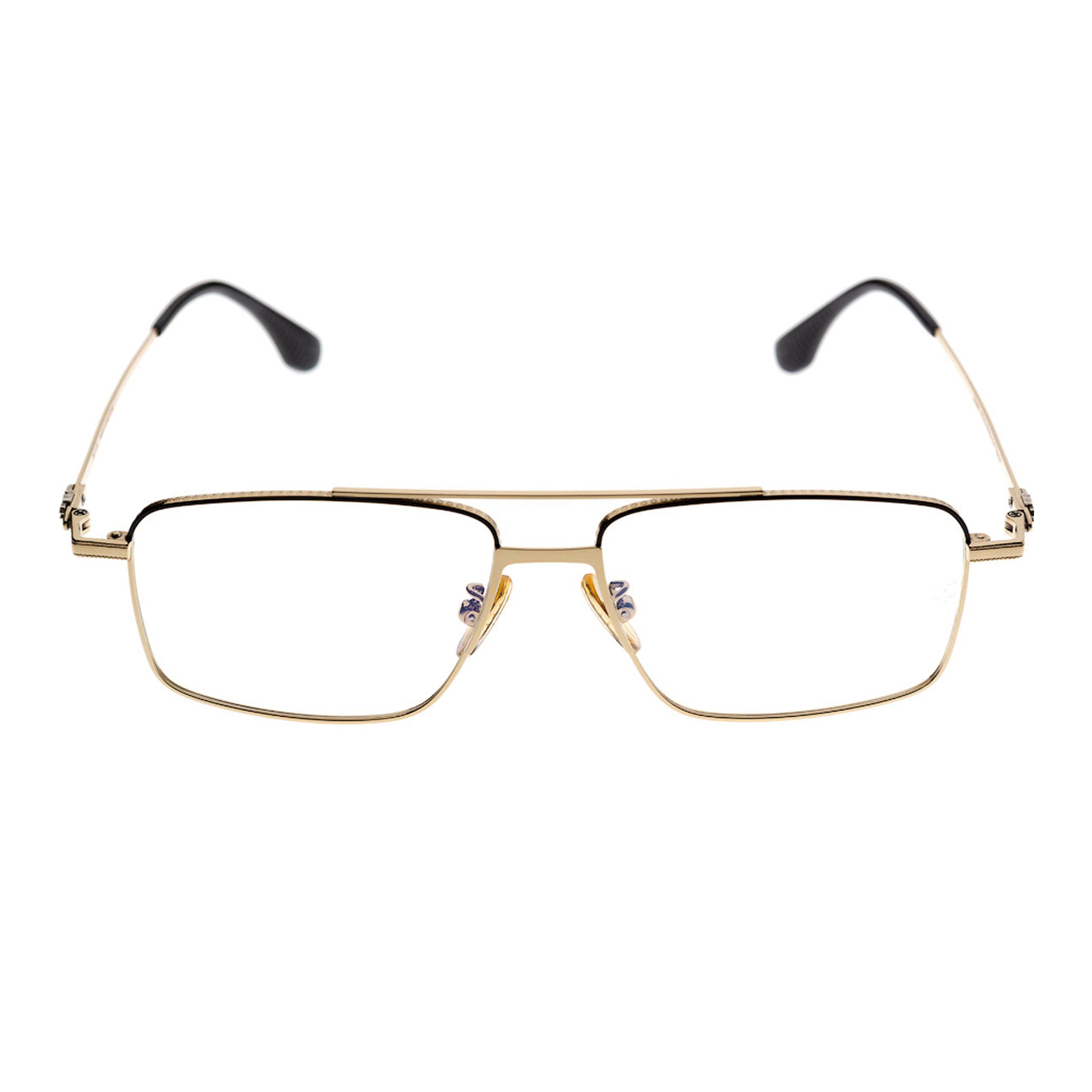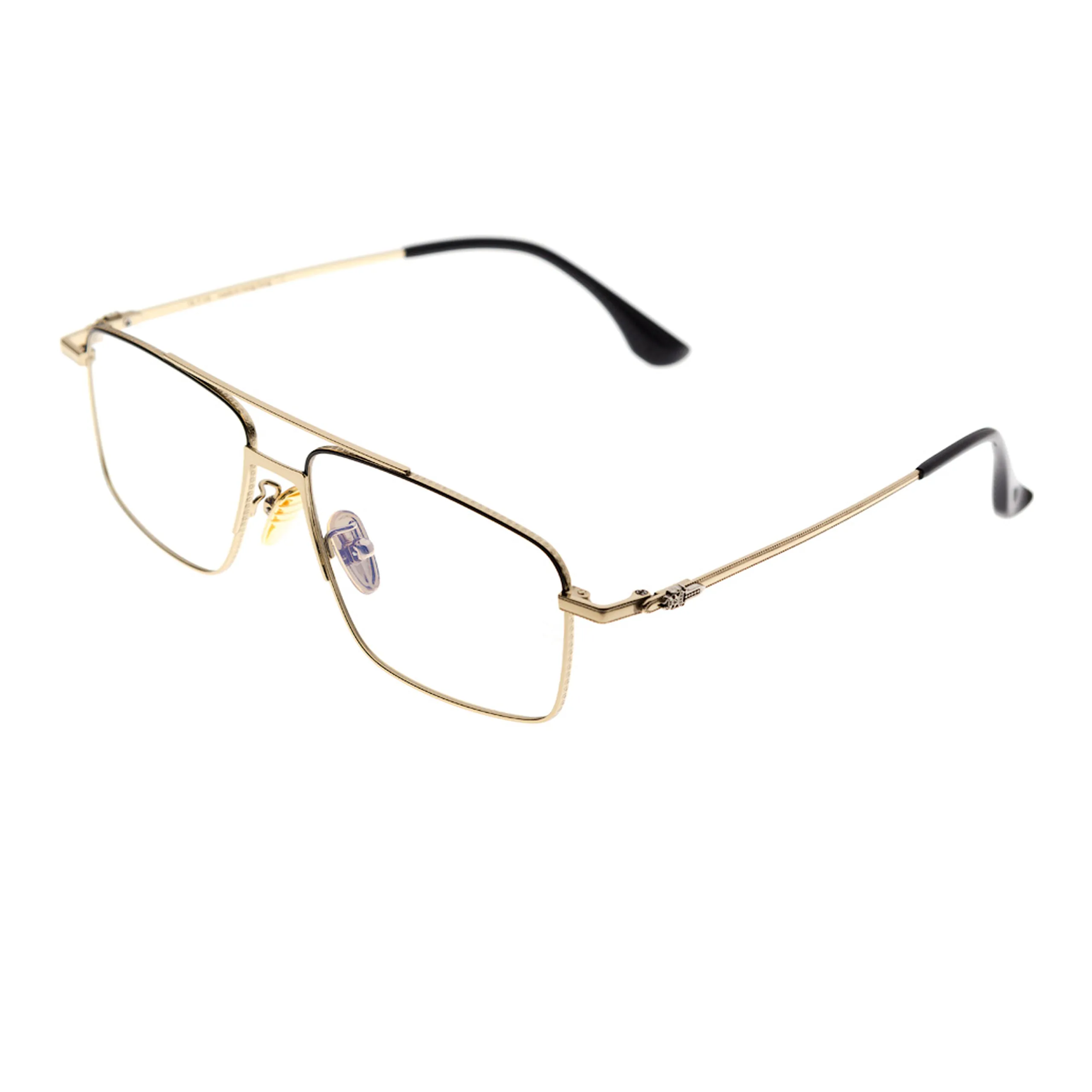 Эффектная модель Sambo формы “авиторы” с двойным мостом. Контраст черного фронта и золотых дужек добавляет очкам премиального лоска.