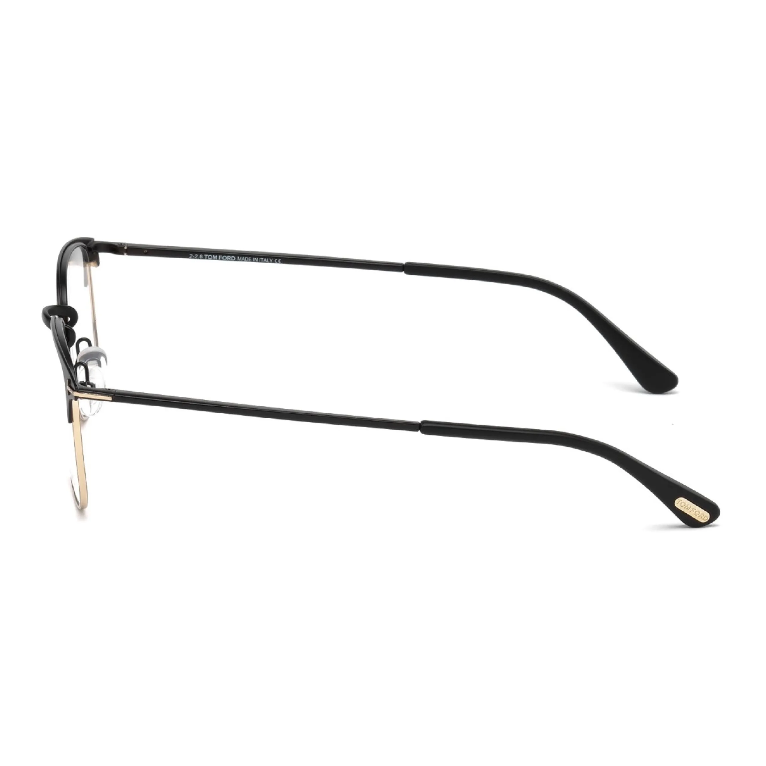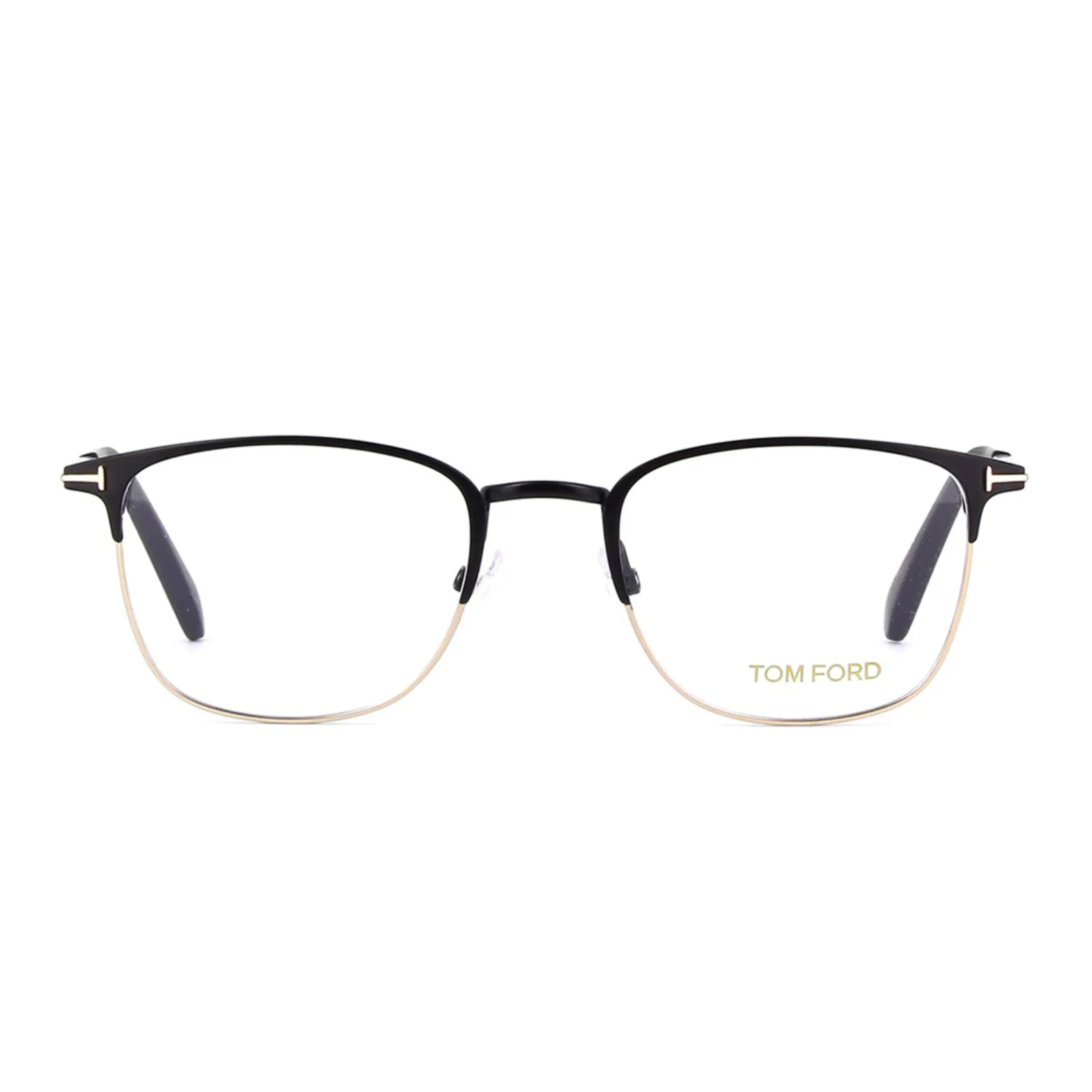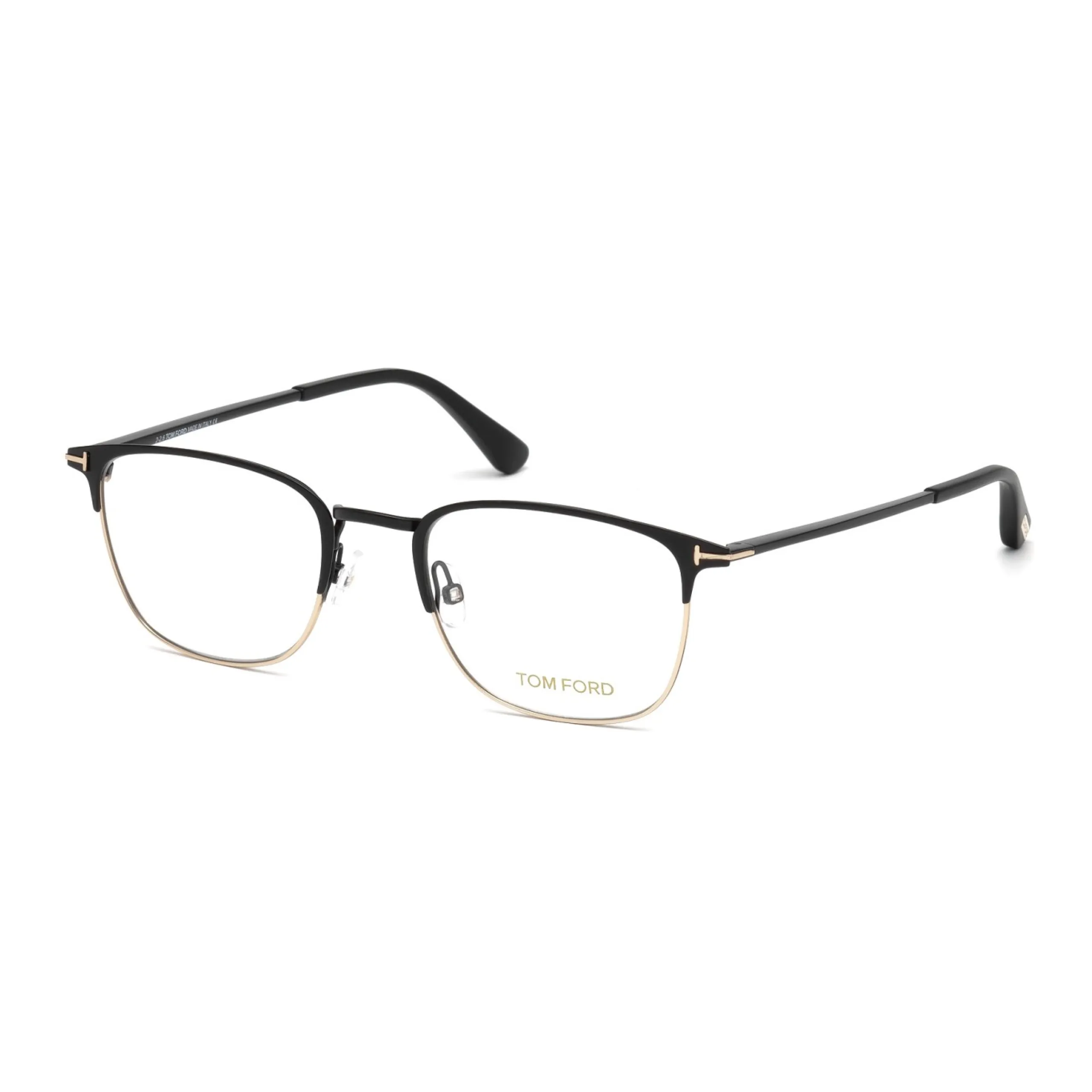 Конструкция модели 5453 выполнена из сочетания премиального ацетата и высококачественного металла, что обеспечивает идеальный баланс прочности и визуальной легкости. Цветовое решение 002 представляет собой эффектный контраст матового черного верха и благородного золотистого основания, дополненного культовым логотипом в виде буквы «T» на шарнирных соединениях. Внимание к деталям и ручная отделка гарантируют долговечность оправы, превращая её из утилитарного предмета в истинное ювелирное украшение для лица.