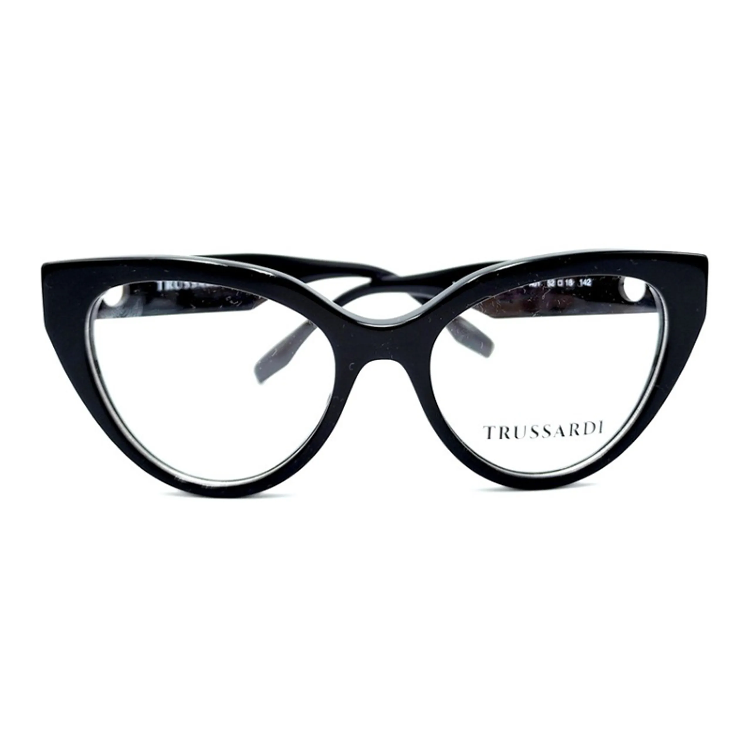 Стильная оправа из ацетата формы “кошачий глаз”. Оправа TRUSSARDI создает актуальный винтажный образ.